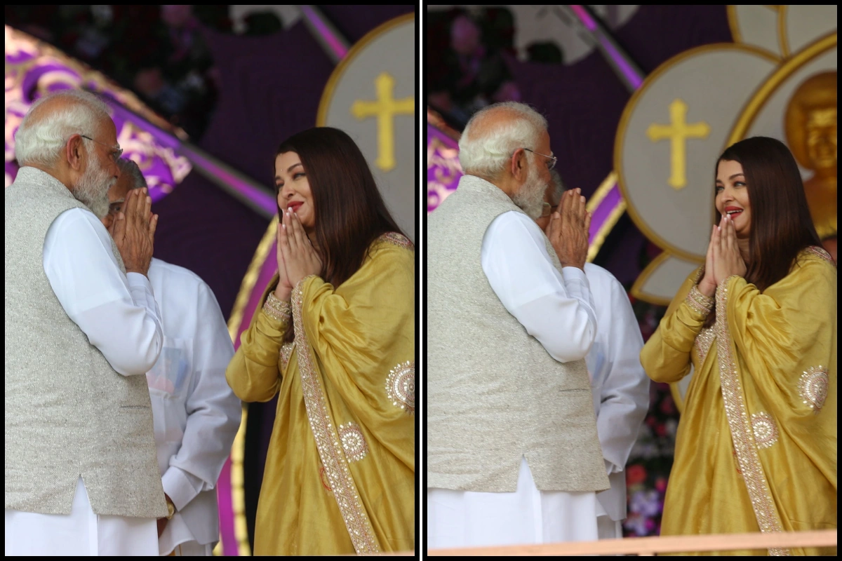 Bollywood icon Aishwarya Rai Bachchan marked her presence at the centenary celebrations of the revered spiritual master Shri Sathya Sai Baba in Andhra Pradesh, where Prime Minister Narendra Modi was also in attendance.
