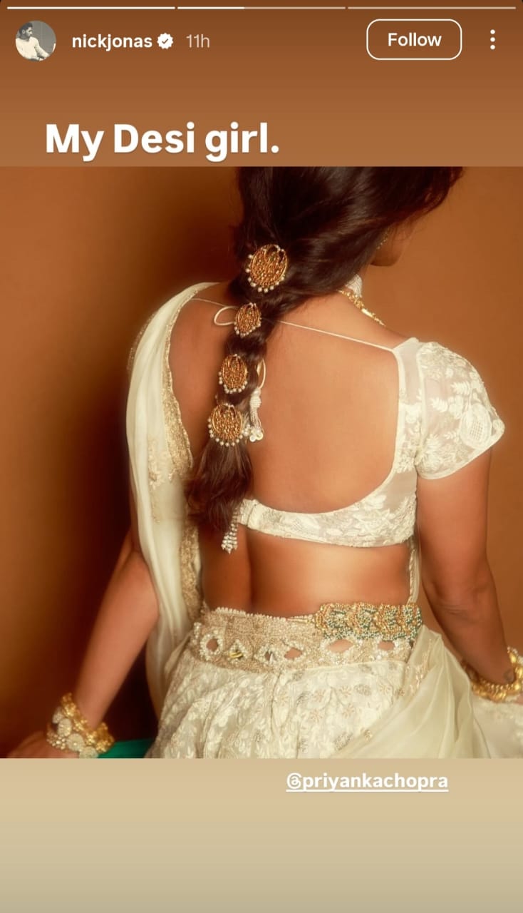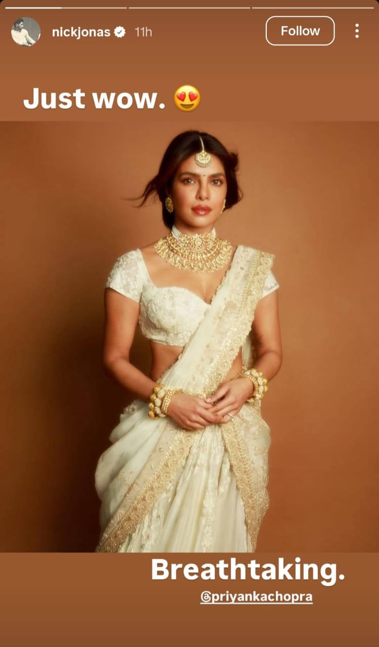 Posting another photo, Nick wrote, ‘Just wow. Breathtaking,’ expressing admiration for her traditional lehenga choli look, which fans described as goddess-like.
