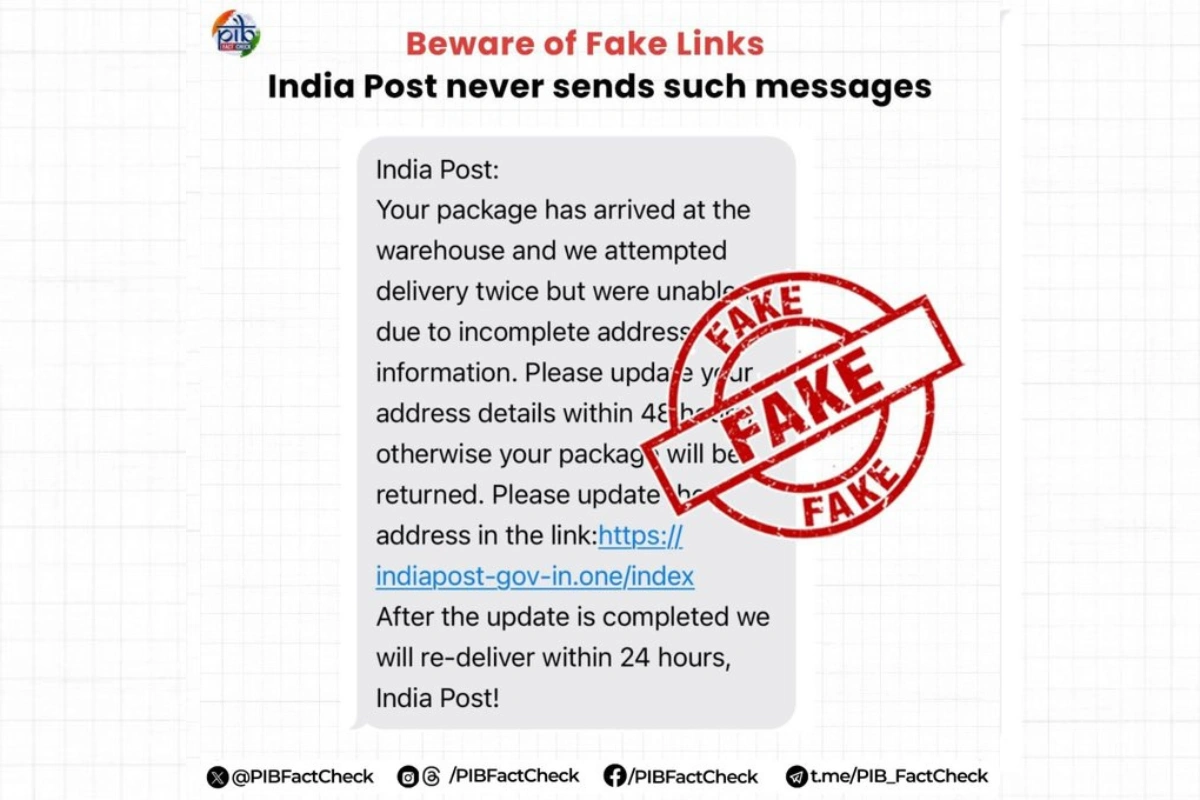 The government’s fact-checking unit, PIB Fact Check, has issued an important advisory warning citizens about a false message circulating via SMS that falsely claims to be from India Post.