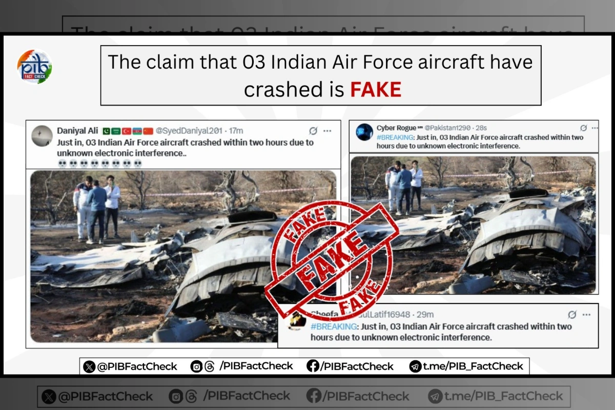 The Press Information Bureau (PIB) has categorically dismissed social media claims suggesting that three Indian Air Force (IAF) aircraft crashed within a two-hour window due to unspecified electronic interference.