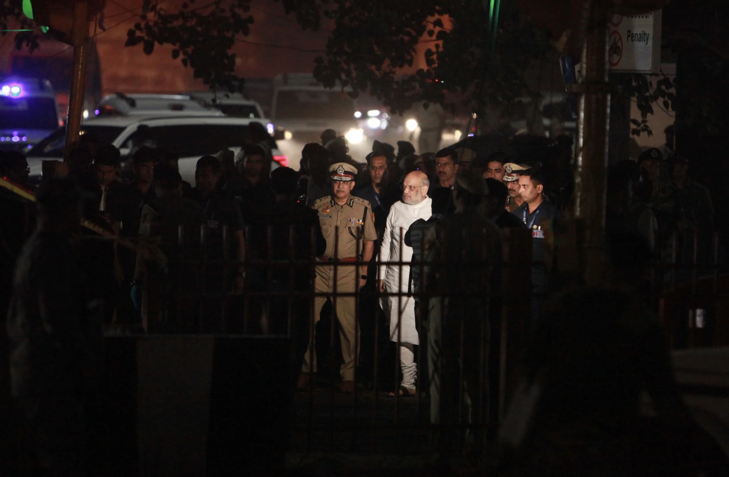 On Monday night, HM Shah visited the blast site near Gate No. 1 of Lal Qila Metro Station, where a car explosion caused widespread panic and severe damage.