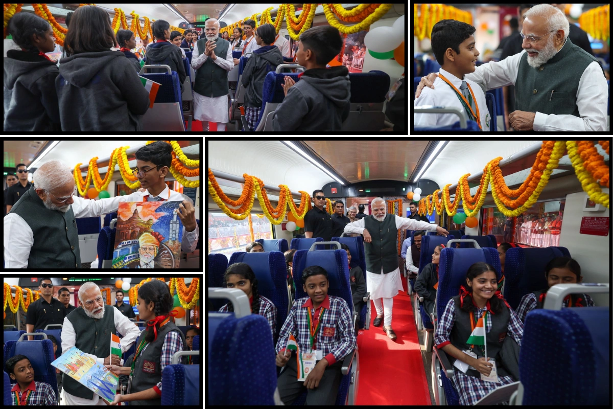 Prime Minister Narendra Modi interacted with students aboard the Vande Bharat Express in Varanasi on Saturday, engaging them in discussions about cleanliness, national development, and the vision of an Aatmanirbhar Bharat.
