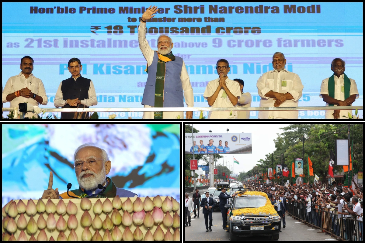 The Prime Minister praised Tamil Nadu’s farmers for their resilience and noted that former Coimbatore MP CP Radhakrishnan now serves the nation as Vice-President.