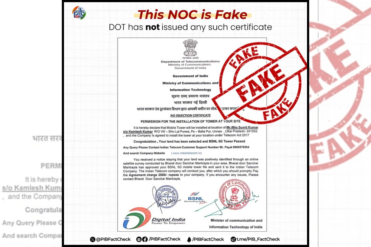 India’s official PIB Fact Check has flagged a growing scam targeting property owners with fraudulent BSNL 5G mobile tower NOCs.