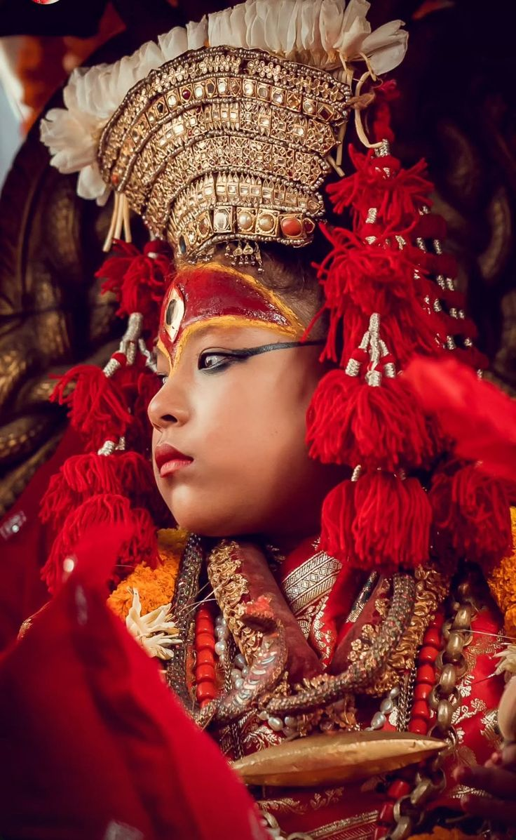 A centuries-old Kathmandu Valley ritual selects a Newar Shakya girl aged 2–4, chosen for her purity, fearlessness, and flawless features.