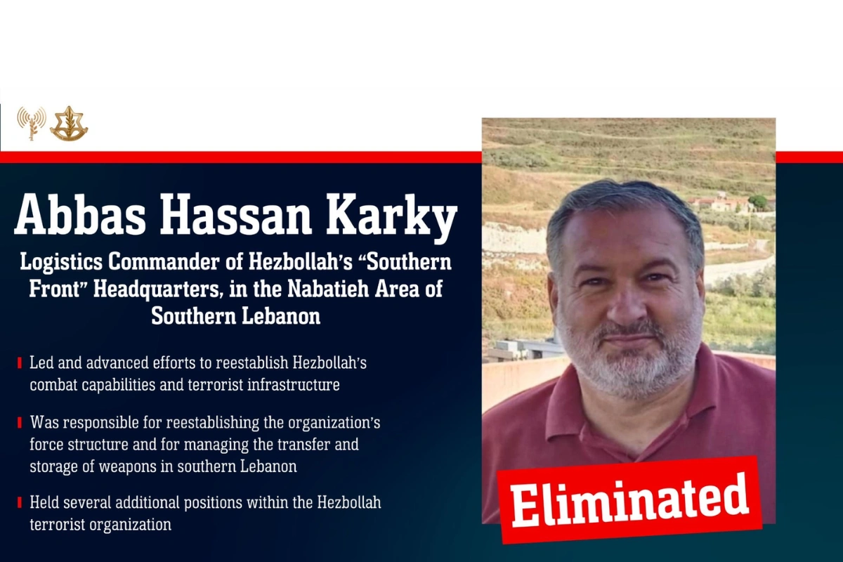 The IDF said Karky led recent efforts to rebuild Hezbollah’s military infrastructure damaged in earlier clashes.